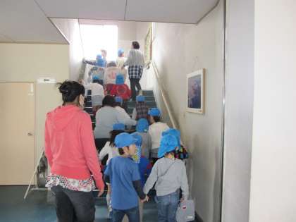 まず、年長さんたちは、小学校の中の様子を見学しました。