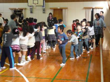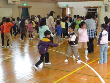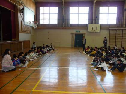 体育館で、「じゃんけん列車」をしました。20分ほどの時間でしたが、みんな大喜びでした。100名強の子どもたちが一緒になり、和やかに遊びました。保育園の子どもたち、みんな伸び伸びとしていて、幡東での生活が楽しみになったと思います。1年生は、下級生を迎えようという気持ちが芽生えたように思います。