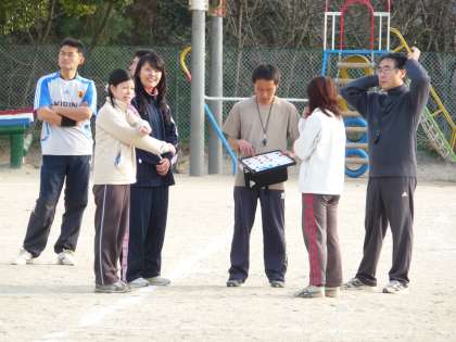 先生達は、直前に作戦会議をして臨みました。(画像1)