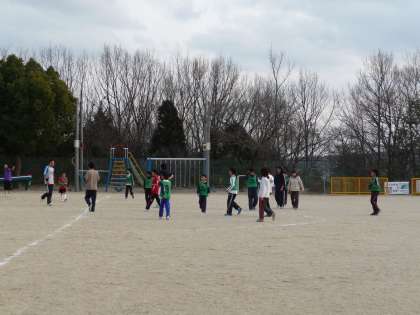 授業後、サッカー部のお別れ試合を行いました。6年生チームVS先生+5年生チームの対決です!