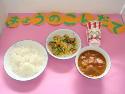 今日は、40分日課のため、少し早めの給食でした。時間が早くても子どもたちのおなかはぺこぺこのようで、各クラスでおかわり行列ができていました。