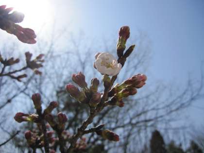 3月20日の朝、校門の桜が開花しました。