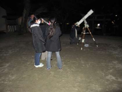 春分の日の午後7時30分から1時間、地域の天体愛好家の方と『星空観望会』を行いました。