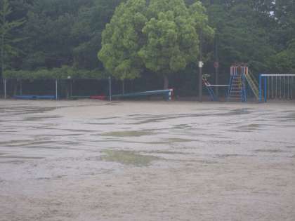 梅雨入りを思わせるような、雨の降り続く一日となりました。運動場もご覧の通りです。