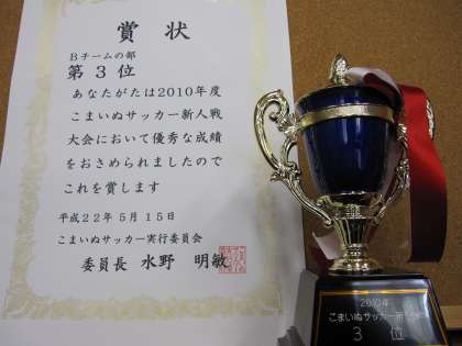 サッカー部Bチーム こまいぬサッカー新人戦第3位 公開日 2010/05/16 更新日 2010/05/16 部活動 5月15日に行われた「こまいぬサッカー新人戦」において、本校サッカー部Bチームは水南小学校に1対1、效範小に0対1という戦績で第3位となりました。 いいね(0)