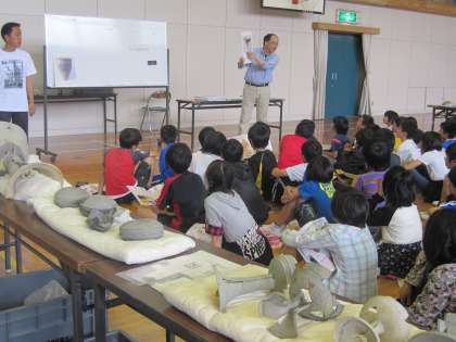 瀬戸市埋蔵文化センターの方を講師に招き、山口地区から出土した土器やはにわをもとに、主に古墳時代のお話を聞きました。
