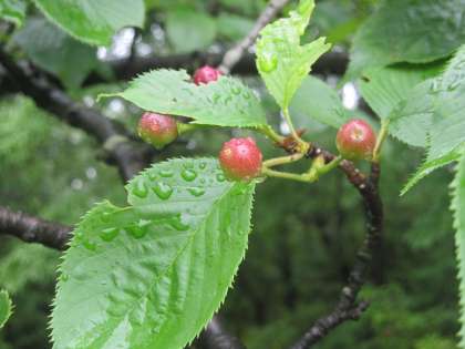 学校の南の階段のところにある木に写真のような実がついていました(見たことある人いますか?4番の木にもついていますよ。)