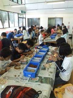 少ない時間の中、子どもたちは工夫をして作っていました!壁掛けはおみやげになります。