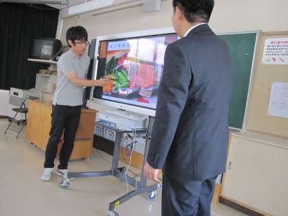 テレビの画面に、黒板のように文字を書き込むことができます。また、画像の一部を拡大したり、隠したりすることができます。さらに、インターネットに接続して、興味深い資料を提示することもできます。