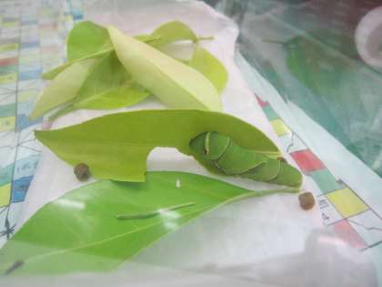 3年生が飼育しているアゲハの幼虫が、一週間で下のようになりました。脱皮をしながら成長したのです。