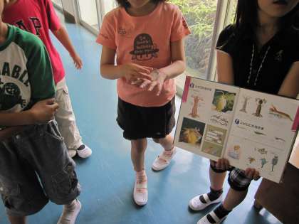 調べ終わった後、子どもたちはホーネンエビを田んぼに戻してあげていました。