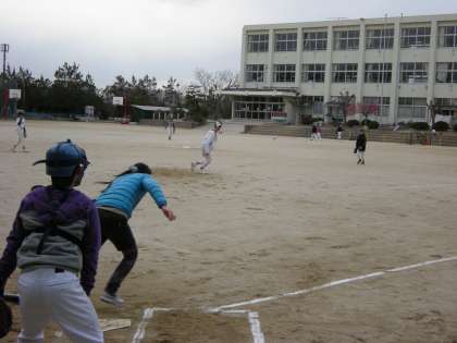 9日(水)は、野球部VS教員チームのお別れ試合が行われました。野球部のエースが投げる球は、とても威力があり、また緩急をつける巧みな投球術に教員チームはなかなかチャンスがつかめません。(それなりに打てるように気を配って投げてくれてはいましたが・・・)圧巻は、数年前、甲子園を目指す高校球児だったJ先生との真剣勝負です。結果は、J先生の3打数1安打(ホームラン)という結果になりました。打たれた悔しさを糧に、J先生が果たせなかった甲子園出場を目指してください。もちろん、他の野球部員も是非、甲子園の土を幡東のグランドに蒔いてくださいね。試合結果は、4−1で野球部員の勝利でした。でも、先生方は意外と接戦になったことに喜んでおられました。野球部のみなさん、優しい心配りをありがとう。