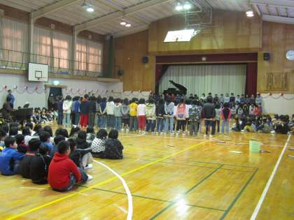 各学年は、6年生のお兄さんやお姉さんの前で歌を披露しました。