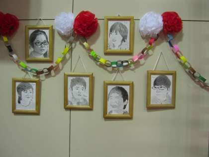 ※一番下の写真は、幡東の伝統になっている「点描画:自画像」です。会場には全員分、飾られています。