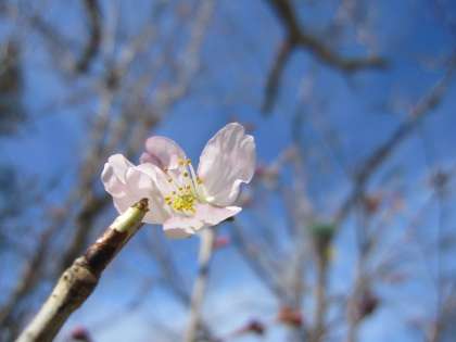 桜の花が、卒業生の門出を祝うかのように一輪だけ咲きました。