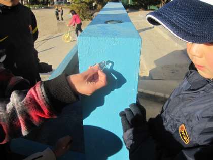 今朝、3年生のI君が、「きれいな氷だよ」と見せてくれました。それは、透き通った美しい氷でした。朝陽を受けて、きれいに光ります。氷に差し込んだ光の集まるところが明るくなりました。