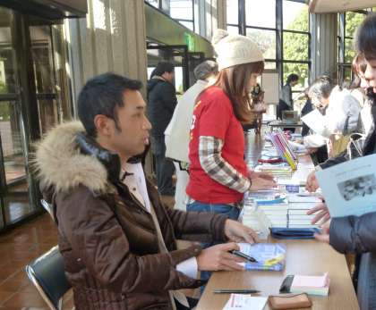 【杉浦貴之さん】 【著書やCDにサインをする杉浦氏】 【雑誌メッセンジャー】