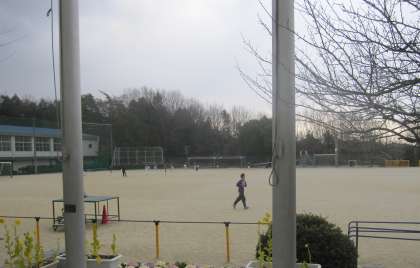 下の写真は、14日(土曜日)の午後3時の運動場の様子。元気に野球部が練習しています。その周りを黙々と走っているK君が32周目に入りました。