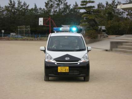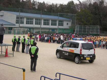 青パト「やまぐち も〜やっこ号」が学校に来てくれました。1月4日から、この山口地区を巡回パトロールしてくれています。