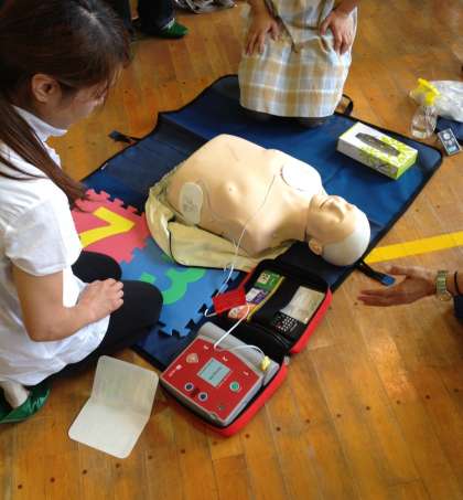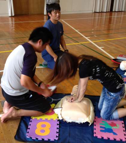 私は、今回始めて救命講習を受講させて頂いたのですが、非常時の対応の仕方、心臓マッサージのコツ、AEDの使い方等、時折、雑談を交えながら分かりやすく教えて頂きました。