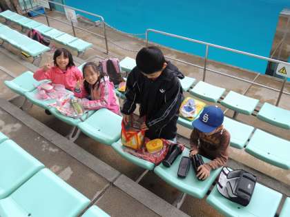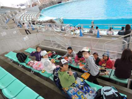 お弁当 2年生 公開日 2012/12/31 更新日 2012/12/31 日々のページ 11/20(火) 2年生が名古屋港水族館でお弁当を食べました。 イルカショーが行われたプールを前に、お弁当を広げています。 水しぶきを浴びることなく、イルカショーの余韻に浸りながら、お弁当をいただきました。 いいね(0)