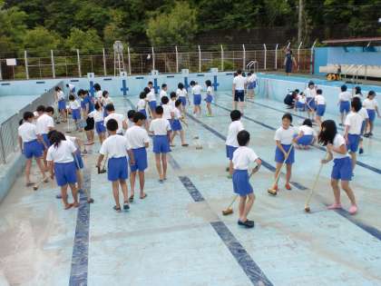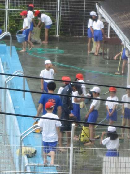 雨天のため、順延となっていたプール清掃が、30日(木)に行われました。