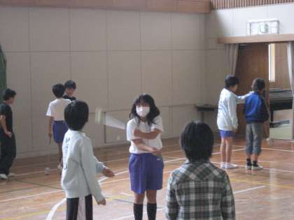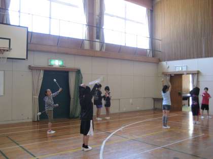 5年生が野外活動のキャンプファイヤーで行うトーチトワリングの技を、6年生から引き継いでいました。