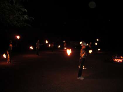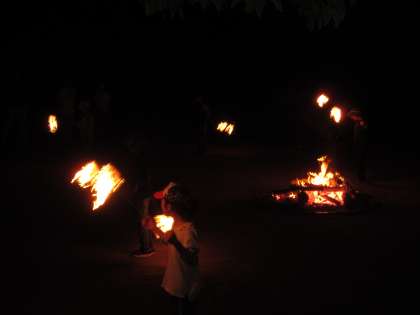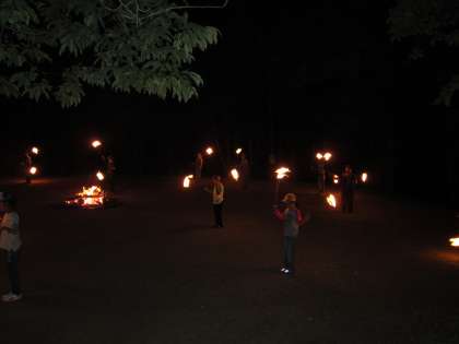 静寂した闇夜の中に、炎が舞う音と光がとても幻想的です。