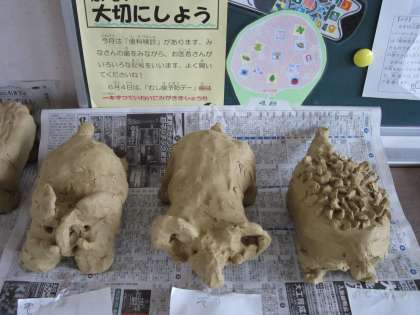 上から順に、1年生、2年生、3年生の児童の作品です。