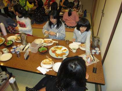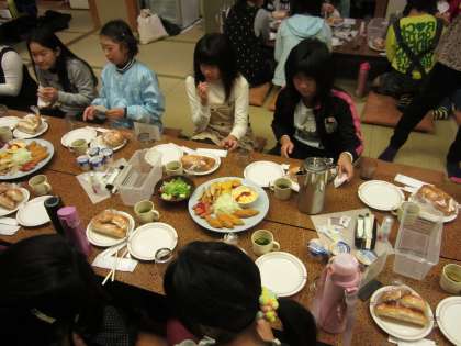 修学旅行ハイライト 2日目 1 公開日 2013/11/24 更新日 2013/11/24 日々のページ 修学旅行2日目が始まりました。 目覚めとともに、布団等を片付け朝食をとります。 朝食は、洋風でした。しっかりと食べて、これからの活動に備えます。 いいね(0)