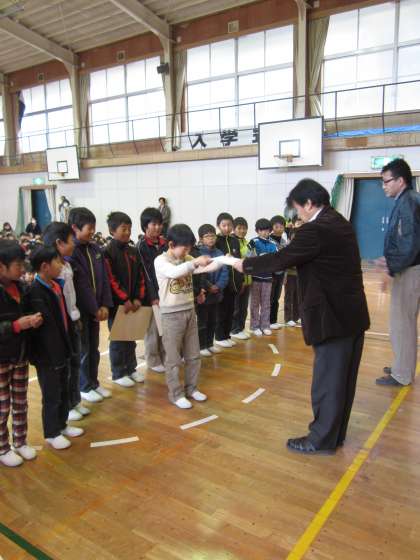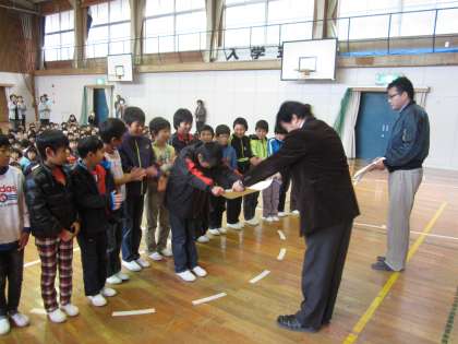幡東ブルースカイの高円宮杯3位入賞の伝達表彰が行われました。