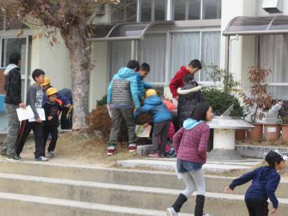 児童集会 1 公開日 2013/12/13 更新日 2013/12/13 日々のページ 冬の児童集会が行われました。 今年の児童集会はペア学年で、「運動場に隠された宝物を探す」「暗号を解読する」の2つのゲームを楽しみました。 いろいろなところに宝が隠されていました。 いいね(0)