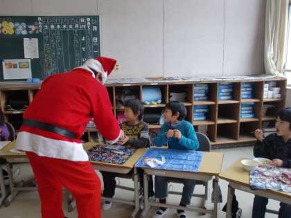 今年もサンタがやってきました 公開日 2013/12/19 更新日 2013/12/19 日々のページ 今日の給食に、クリスマスデザートとしてケーキが出されました。恒例のサンタクロースが、今年も各教室を回り、児童にケーキを渡しました。 子どもたちも大喜びです。 2学期最後の給食を、楽しく食べることができました。 いいね(0)