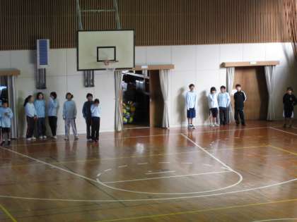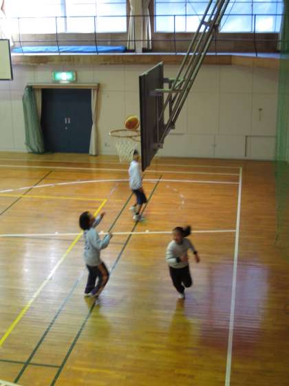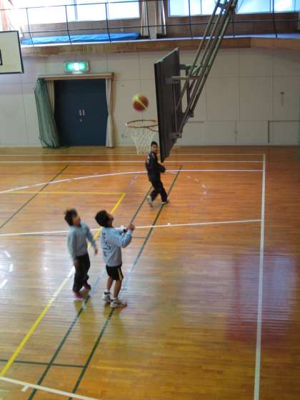 体育館では元気な声が響いています。バスケット部が冬の大会を目指して、練習をしていました。6年生にとっては、最後の大会になります。悔いの残らないように練習に取り組んでください。