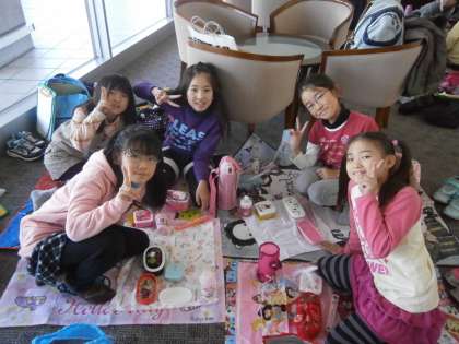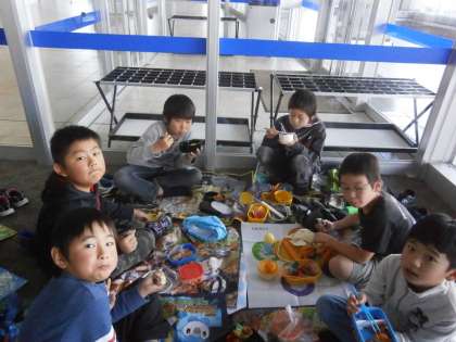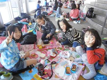 3年生が商店街に出かけたときの、お弁当風景です。