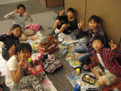 5年生が、トヨタ自動車工場に出かけたときのお弁当風景です。