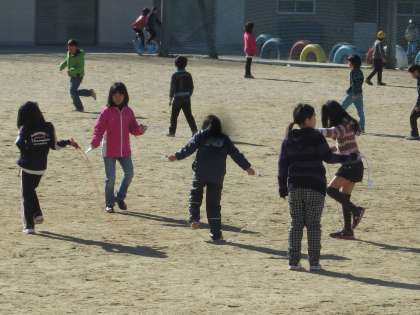 なわとびをすると体が温まります。寒さに負けないで、ぜひ、なわとびにもチャレンジしてください。