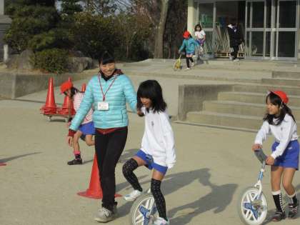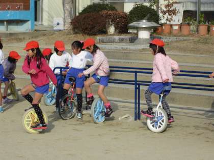 一輪車 公開日 2014/01/29 更新日 2014/01/29 日々のページ 子供たちの人気の一つに一輪車があります。今年度、PTAのご協力で一輪車練習補助具を新しく直していただいたこともあって、特に一輪車に取り組む児童の姿が多く見られます。 難しいけど、練習をして乗れるようになったときの喜びは格別ですね。 いいね(0)