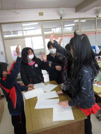 2/24(月)に開かれる音楽集会に向けて、「幡東音楽隊」のメンバーが台詞等の役割分担を決めるとともに、早速、練習にも取り掛かりました。