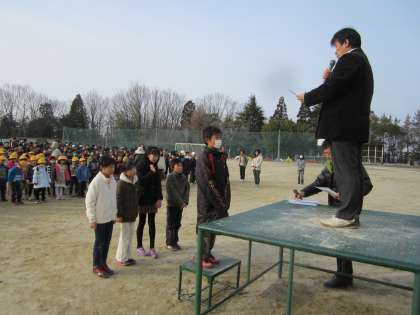 児童会役員の認証式が行われました。 この後、最初の行事の「卒業生を送る会」に取り組みます。