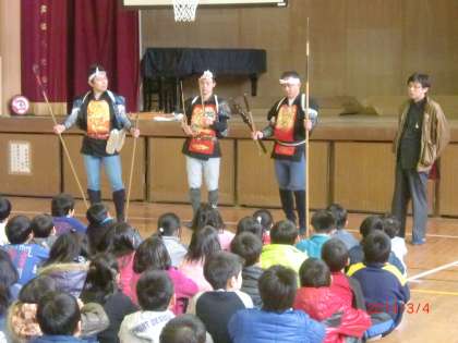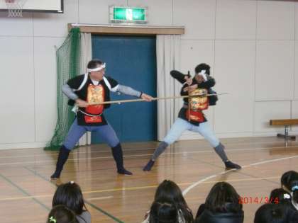 今日は山口棒の手保存会のみなさんに来ていただき、3年生に棒の手を教えてもらいました。
