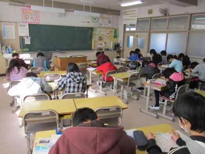 風邪やインフルエンザ等で欠席をする児童が増加しており、空席が目立つ学級も見られます。予防のためにマスクをしている子の姿も多く見られます。