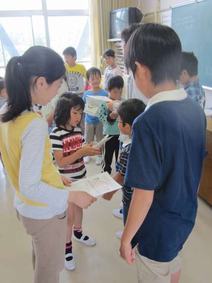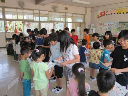 今年度もペア学年による交流が、年間を通して行われます。そのための顔合わせが行われました。お互いに、挨拶をした後で事前に作っておいた自己紹介カードを交換し合いました。