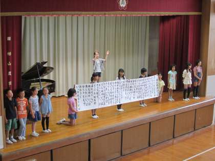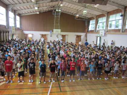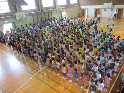 始業前に今年度の音楽集会が行われました。今年度の最初ということで、1年生でも歌いやすい曲(「校歌」「はじめのいっぽ」)が選曲されました。
