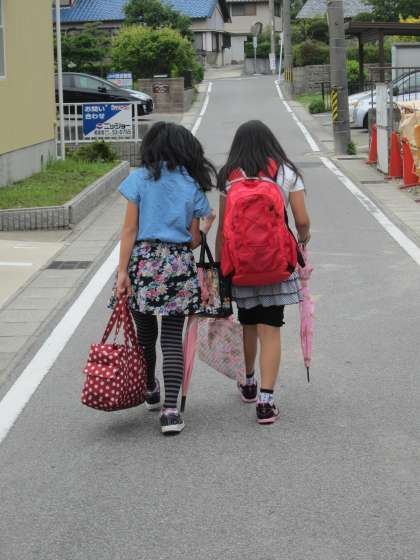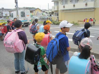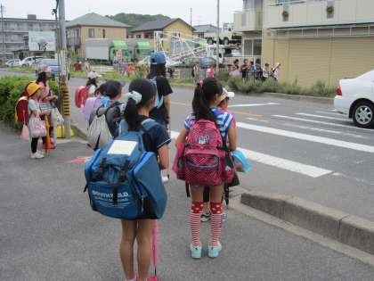 今日から、5年生が野外活動に出かけます。昨日は、大きな荷物を持って登校をしていました。今日は、身軽な格好で出かけます。