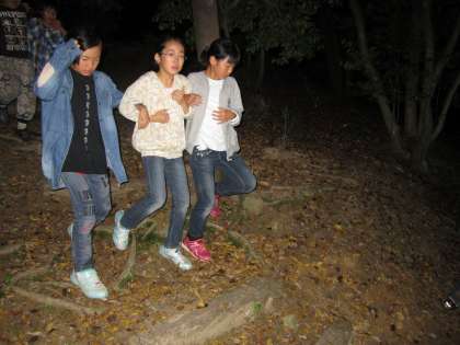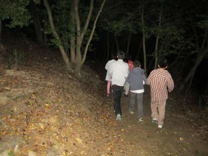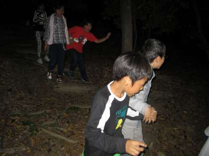 キャンプファイヤーの後に、ナイトハイクに出かけました。暗い夜道に恐怖心が増しました分、仲間の存在のありがたさを改めて感じました。