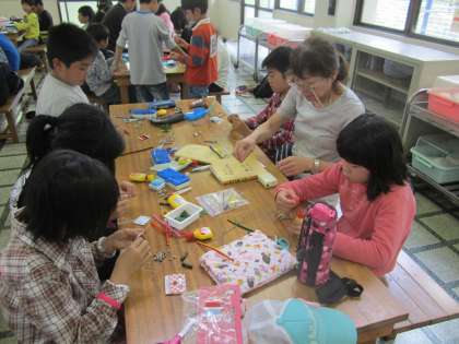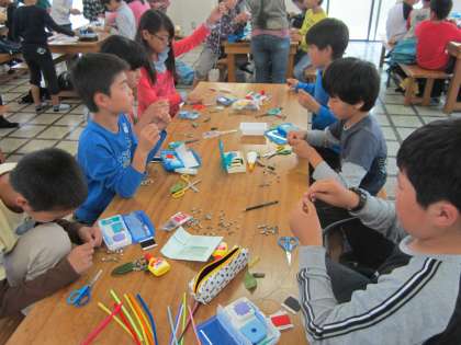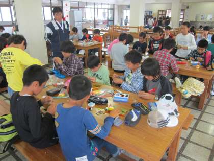 野外活動 2日目 2 公開日 2014/06/15 更新日 2014/06/15 日々のページ 木工クラフト作りに取り組みました。ブレスレットや草笛、手裏剣などを作っていきました。自然物を遊び道具にすることの素晴らしさを改めて感じることができました。 いいね(0)