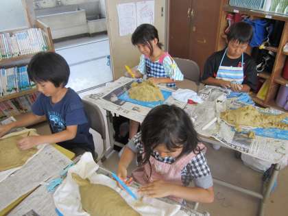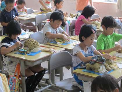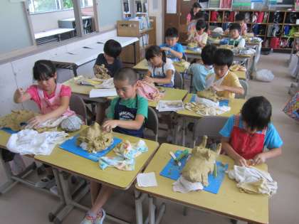 3年生は「動物の体・動物の顔・生き物」の中から1つを選んで作品を仕上げました。テーマが多かった分、事前に創るものを考えておいたので、大作ができあがりました。