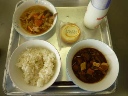6月19日(木)は食育の日「愛知を食べる学校給食の日」です。今日の献立は、麦ご飯、牛乳、愛知野菜の味噌汁、瀬戸豚丼、愛知県産のお米を使ったお米のタルトでした。子どもたちの中には、「今日の給食楽しみだな!」「タルトが食べられてうれしい」と言って給食を楽しみにしている子もいました。給食の時間には、放送で給食委員会からの献立紹介もあり、おいしく楽しい時間を過ごしました。