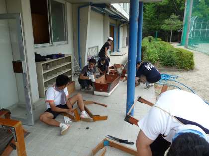 やっぱり頼りの「輪の会」 公開日 2014/07/05 更新日 2014/07/07 輪の会 7月5日(土)、今年度1回目の「輪の会」を開催しました。 ご存じの通り、「輪の会」はお父さんを中心とする幡東の支援の会です。 今日は、不要になった跳び箱を解体する作業と、日頃清掃できない側溝の溝さらいを行いました。これで、体育館器具庫がより使いやすくなったと思います。校門からの坂もさっぱりしました。 やっぱり頼りになる「輪の会」です。 いいね(0)